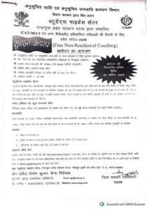 • कोचिंग पूरी तरह फ्री (Free Non-Residential Coaching) होगी