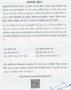 Bihar Mukhyamantree Khel Vikaas Yojana 2026-Important Date