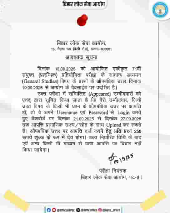 BPSC 71वी का आंसर की जारी, ऐसे करें चेक और डाउनलोड-और आपति दर्ज करना है तो ऐसे करे ?